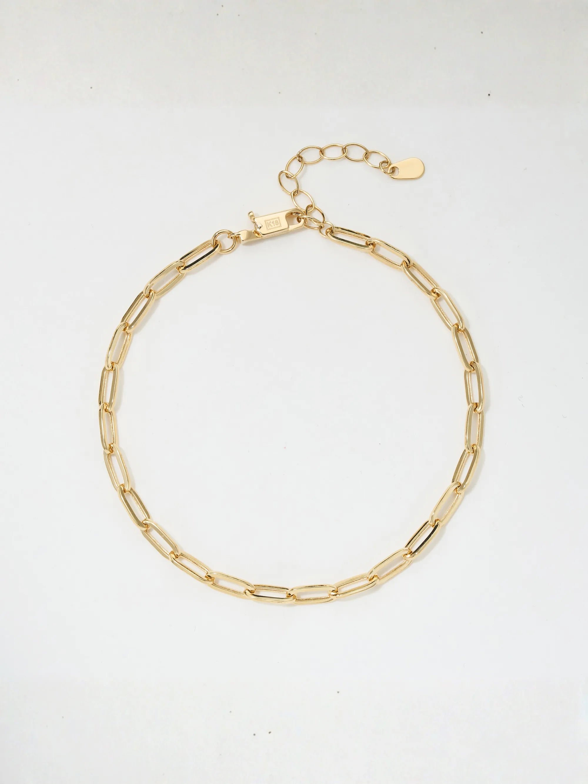 Bold-yet-refined paperclip links create a clean, elongated silhouette with a glossy gold finish, easy to wear solo and perfect for stacking. A sturdy lobster clasp plus 3cm extender lets you dial in the fit for everyday comfort.
