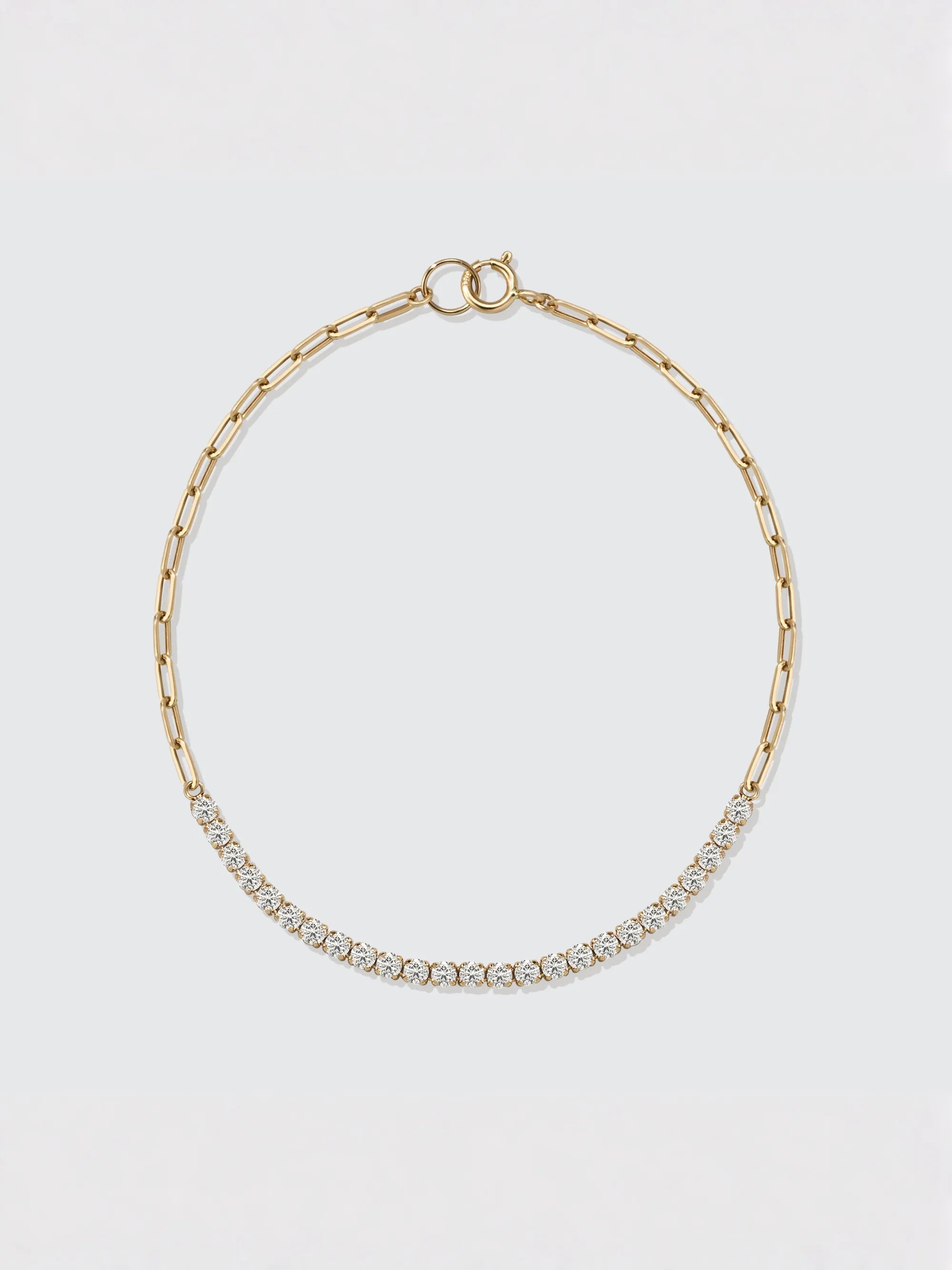 This modern bracelet pairs a sleek paperclip link chain with a sparkling diamond tennis-style bar for effortless, everyday brilliance. A timeless, gift-ready diamond link bracelet that elevates casual looks and special occasions alike.