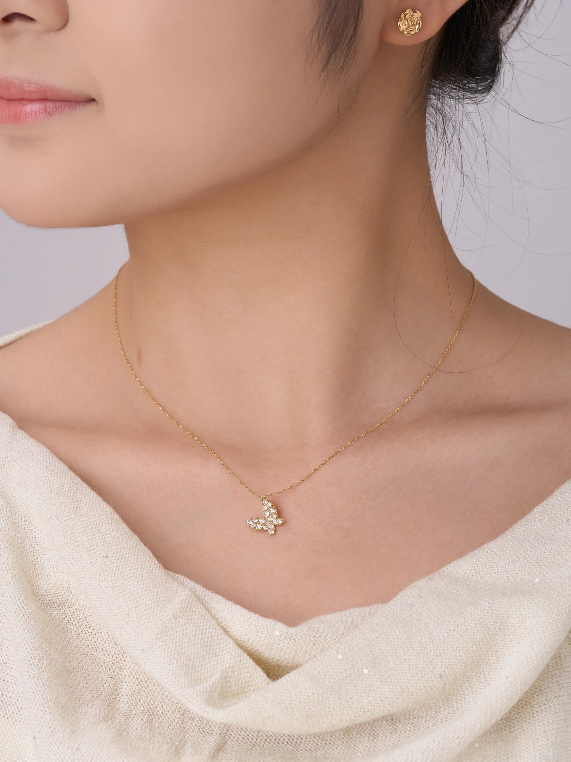 Capturing the beauty of nature, this 18K yellow gold necklace features a delicate butterfly pendant adorned with brilliant pavé diamonds for a graceful sparkle. Style it with a crisp white tee, silk blouse, or little black dress; finish with classic diamond studs or slim gold huggies for a clean, elevated look.