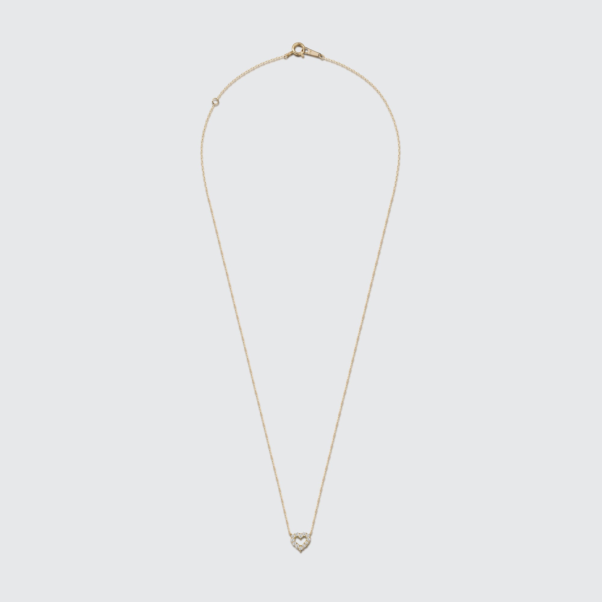 This romantic gold necklace features a delicate open-heart pendant adorned with shimmering diamonds, creating a timeless symbol of love. Suspended from a fine chain with an adjustable clasp, it offers a customizable fit that sits perfectly on the neckline. Its minimalist elegance makes it an ideal everyday accessory or a cherished gift for a special occasion.